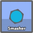 El Smasher tiene una base circular que esta rodeada por un escudo con forma de un hexágono negro, como el Dominador, solo que no tiene disparadores. Este tanque no tiene disparadores como los demás tanques y se piensa que es el tanque más rápido del juego.