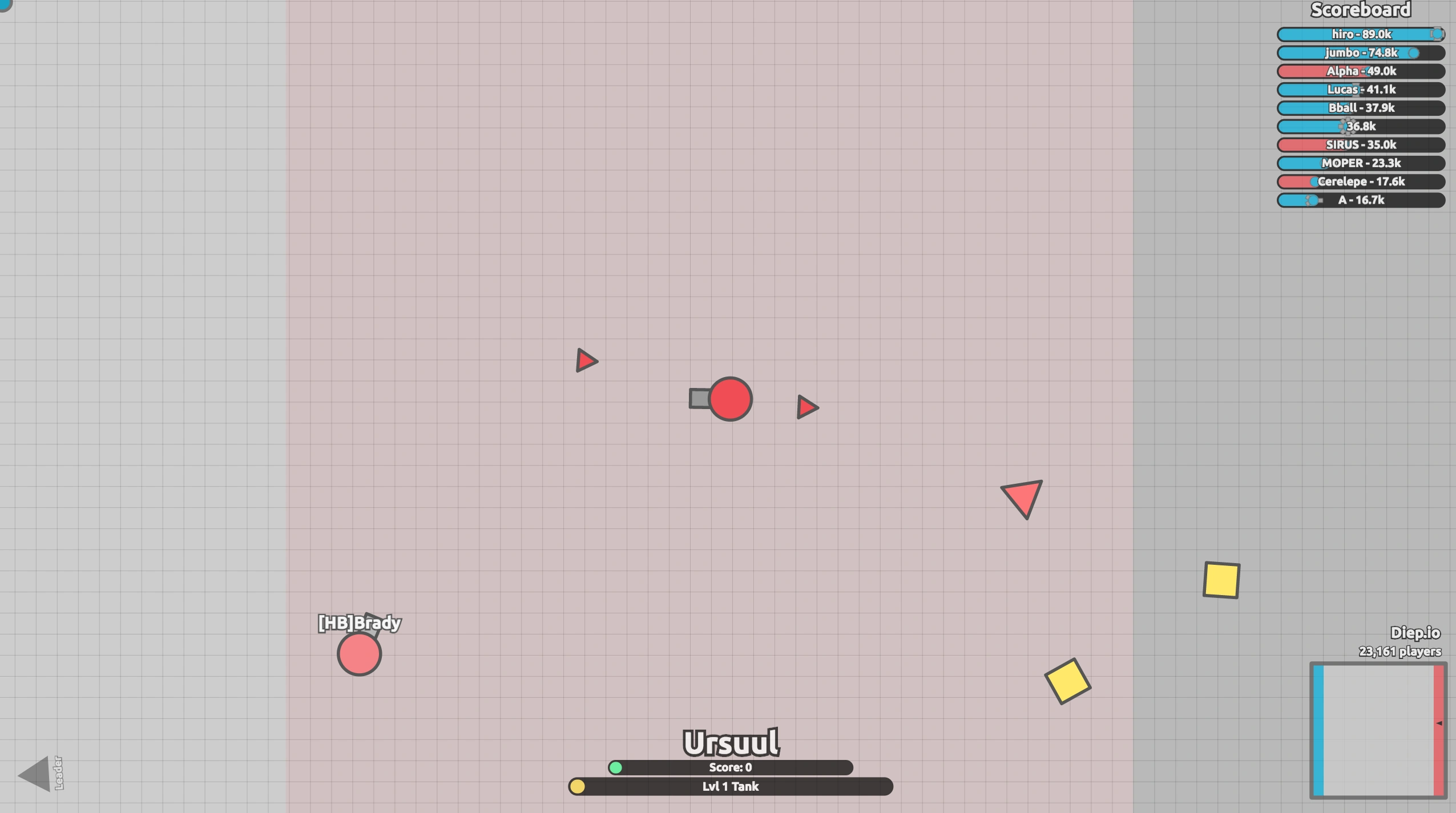 In all modes where Bases are present, the Zones are fatal to any enemy tanks and their bullets. All but the toughest of sniper Bullets will quickly fade into nothing at the edge of the shaded area. All enemy Drones will quickly be destroyed at the edge of the shaded area as well, although highly upgraded Traps will shimmer in the Base for a second or two before disappearing. The Base Drones do not target Arena Closers, Crashers, or Polygon Bosses. The Base itself has no effect on the aforementioned entities, but the can deal damage on Fallen Bosses, and the Base’s Drones will also target Fallen Bosses for any reason. They will only attack Polygon Bosses if provoked.