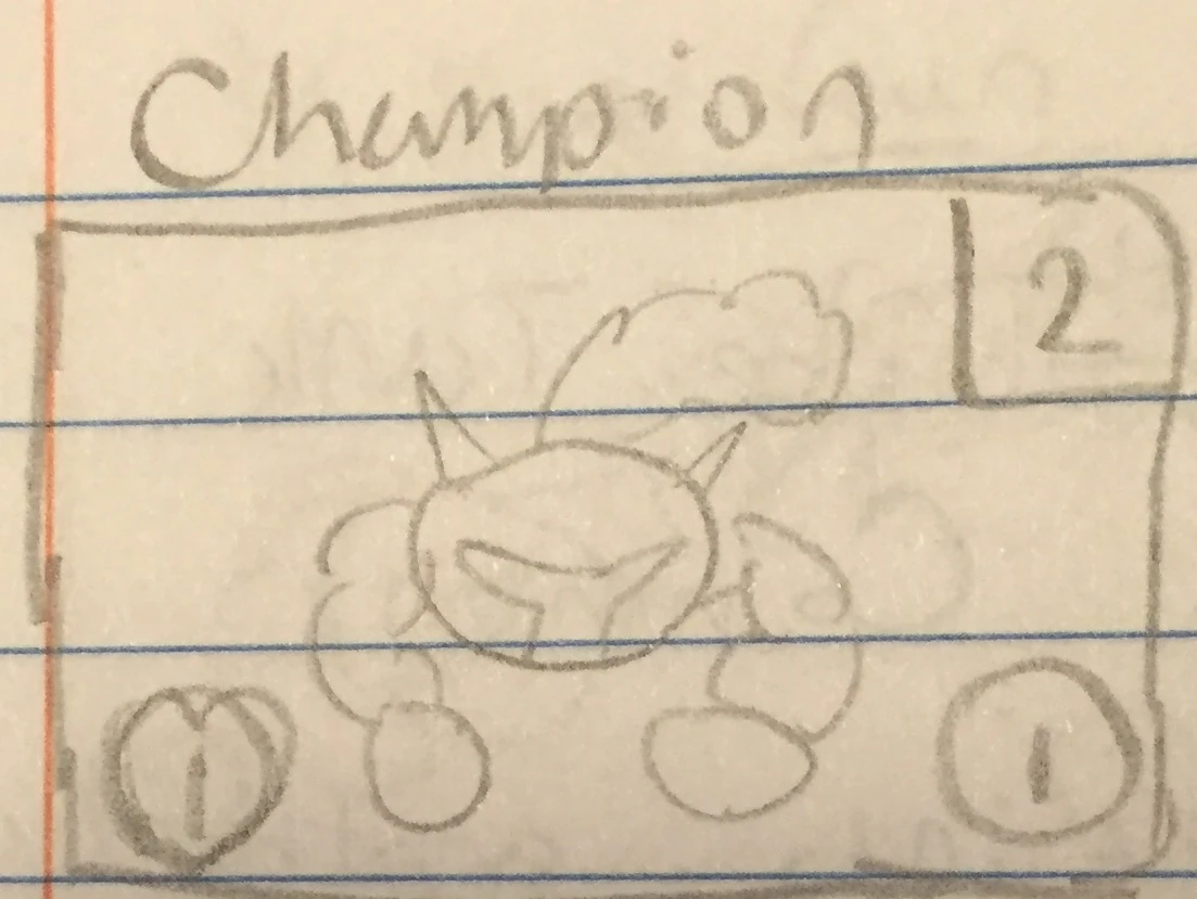 - Specials: Gets +1 Health and Attack for every card drawn. Does a Bonus Attack when a Trick is played.