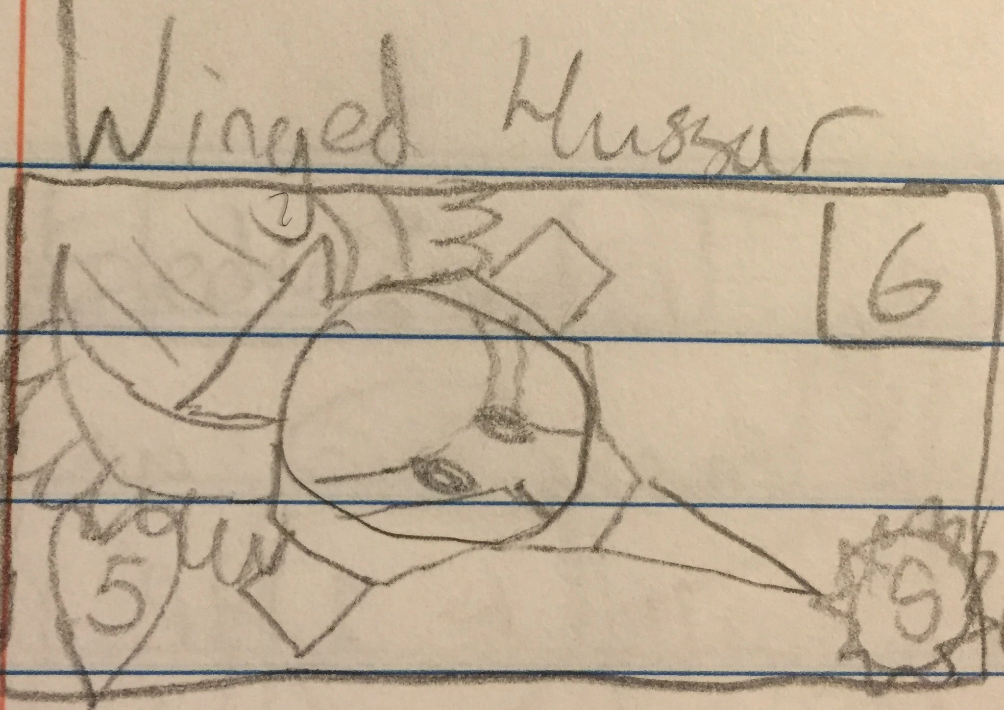 - Appearance: A Triplet with a jester hat and lance on the back.