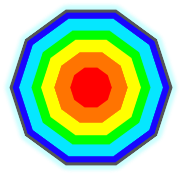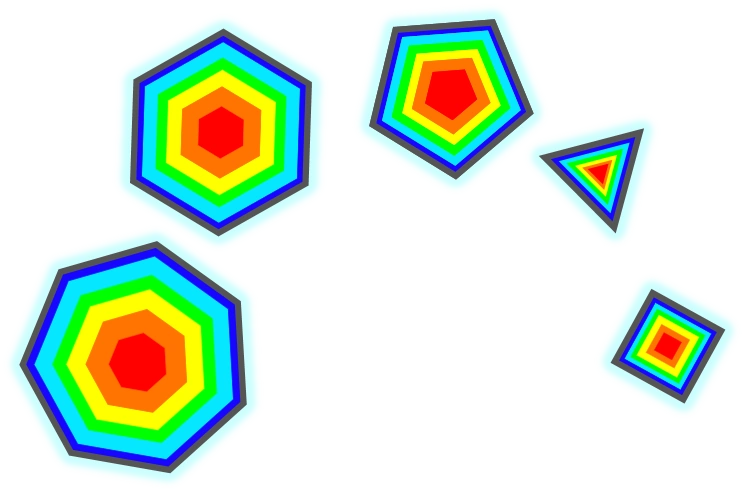 A shimmering polygon is a polygon that cycles through the colors of the rainbow multiplied with the RGB colors of the polygon. The gradient on the left is the rainbow gradient it cycles through. There are a total of 15 tiers of shimmering polygons, each one rarer, better, and cooler than the last. Oh, you've seen a Tier 15 Shimmering Icosahedron outside the Pentagon nest? LIAR! Death by guillotine.