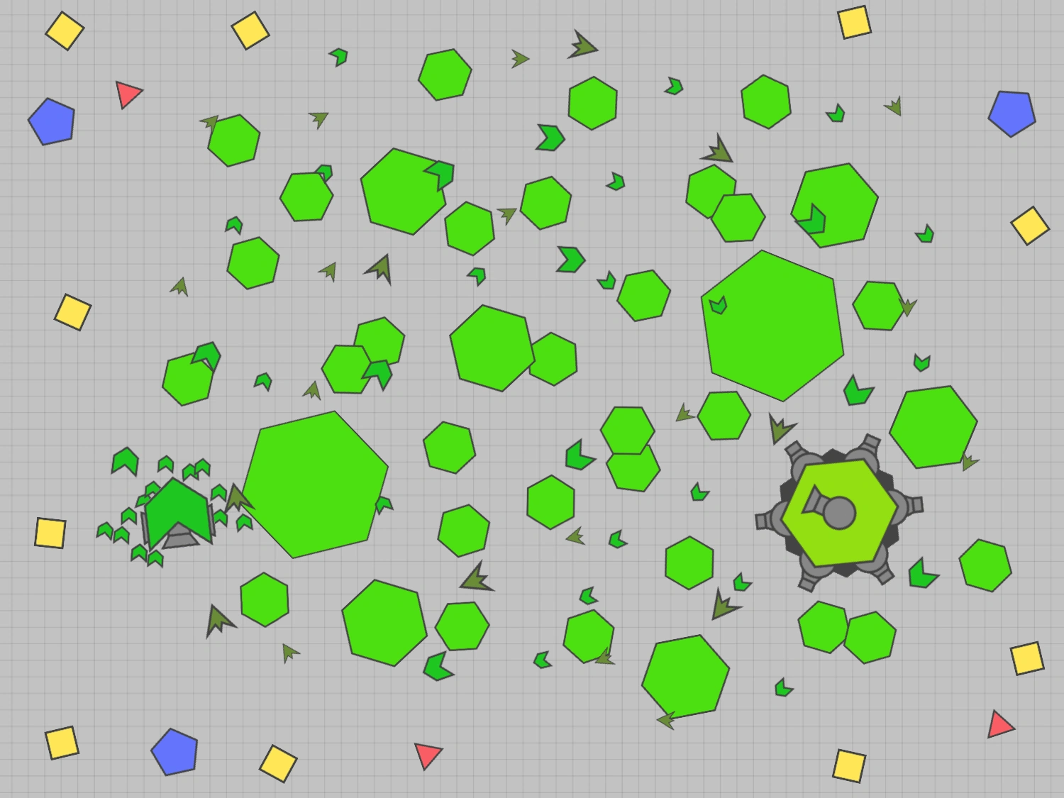 Unlike a tank, Polygons do not have ammunition and can defend with body damage, just like the Smasher. Most serve as a "food source" for players and are the best way to safely level up in Team DM.