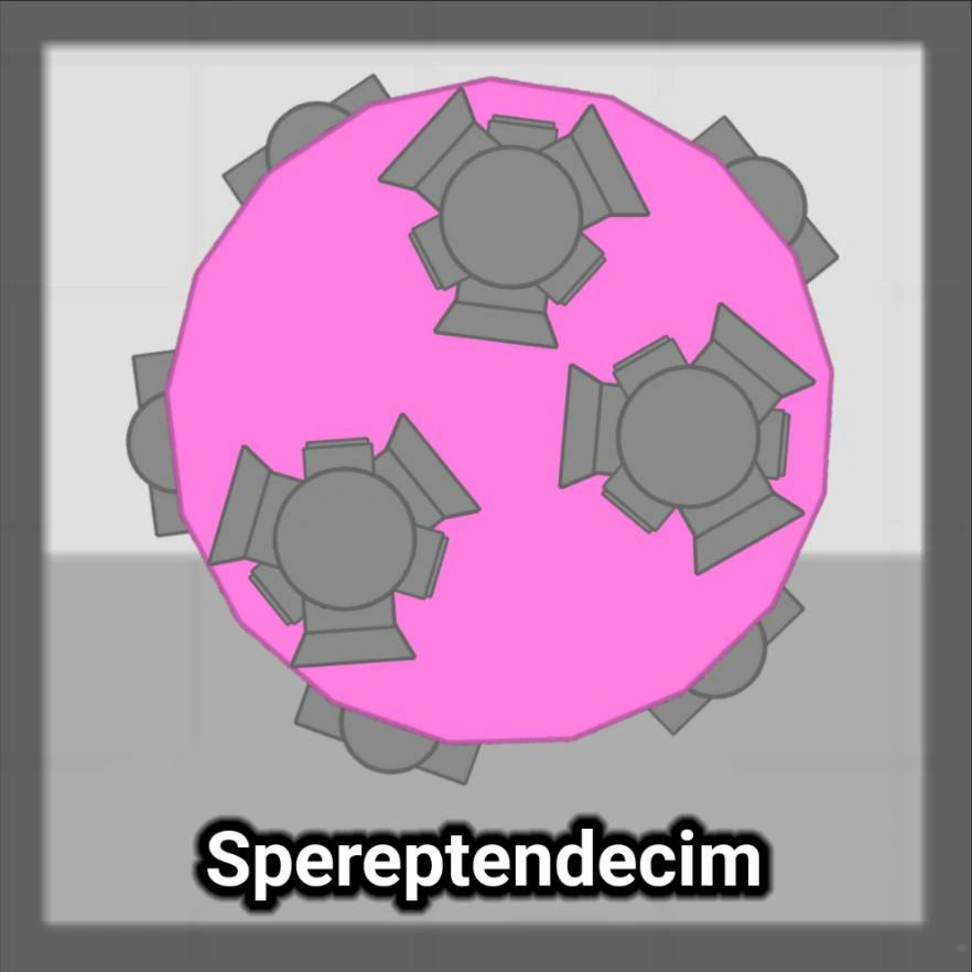 The Sperptendecim is one of the many additions to the polygon boss category, and might just be the one with the largest page when I completely finish. Sperptendecim was added into my own little world on 3/7/2018, and is a gigantic polygon boss that should probably separated into its own category just because of its battle. Sperptendecim is basically a rule breaker, it isn't technically a boss, but its a spaceship with a gigantic overworld inside of it. On the outside, Sperptendecim features a gigantic weapon selection, including modified version of a Flank Guard Auto Turrets, Fortress Auto Turrets, and Shields.