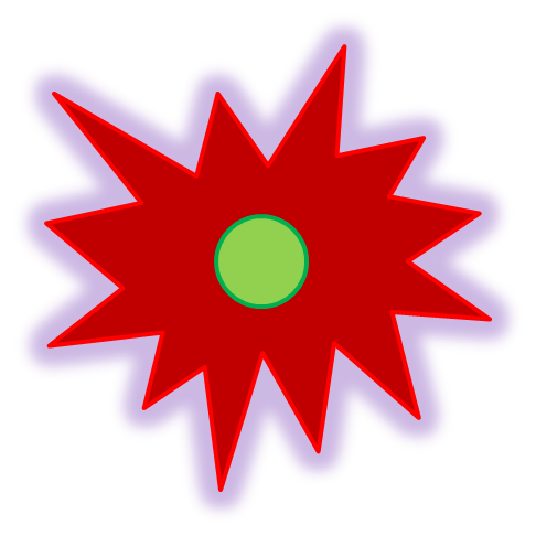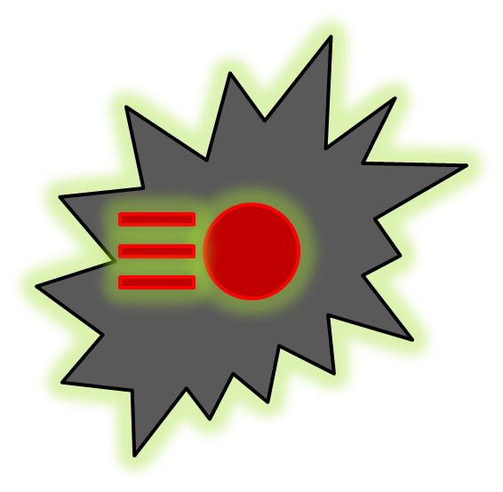 Grenade Bombs are green circles with a grey circle inside it. They travel at a slow speed, and release a low damage, low range explosion along with eight small Grenades that have a timer of one second.