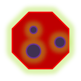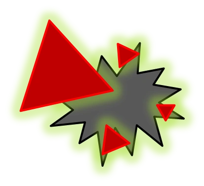 Holo-Bombs are tilted blue concave octagons with four tilted squares inside it. It travels at a fast speed and explodes into a medium damage medium-sized explosion which lingers in that spot for the rest of the game. When shot at, the lingering explosion will become smaller, and can be killed, but after 30 seconds have passed since the first shot, it will regenerate fully.