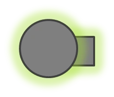 Glow Bombs are grey cartoon bombs with a yellow fuse. They travel at a fast speed and explode into a spreading cloud of yellow bullets. This cloud is very fast and lasts one second. It does no damage and has infinite health and penetration. Everything hit by the cloud will glow yellow for the next minute and have an arrow pointing to them on the screen of the person who owns the Glow Bomb.