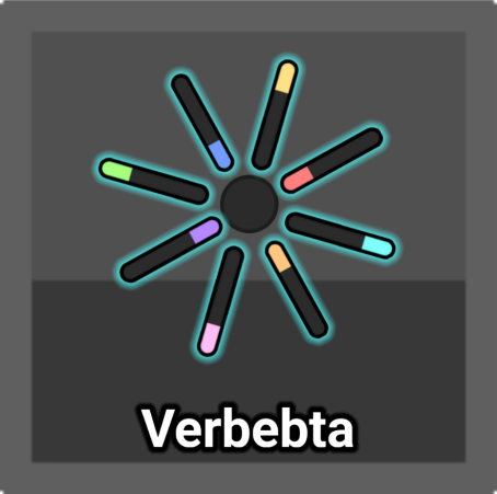 Verbebta features a carbon black colored circular tank body with Eight differently colored stat bars around it, representing the eight stats in Diep.io. One of the stat bars is pushed closer to the tank body itself. The stat bars have a cyan glow.