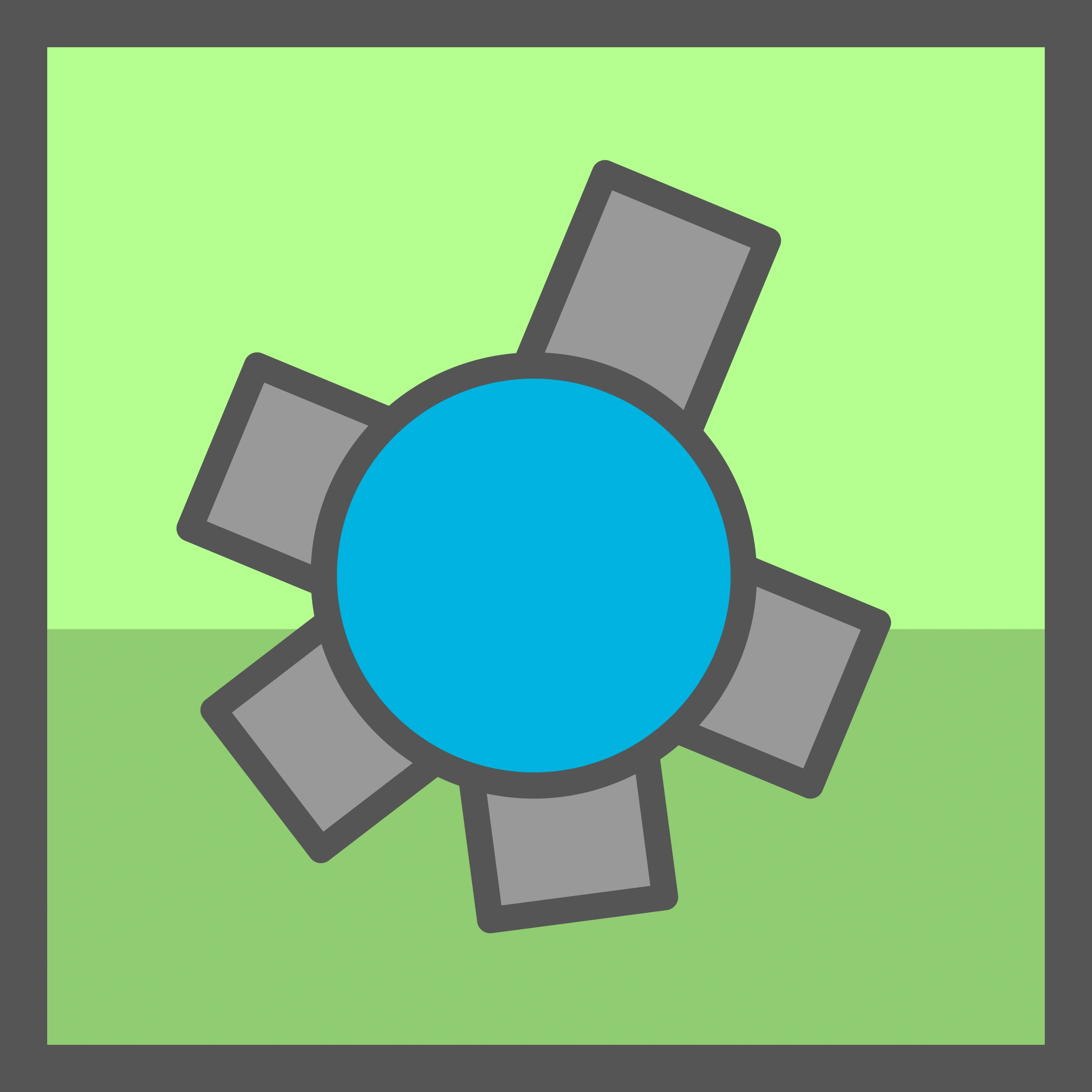 It has five Cannons; two of them are on the back of the tank (same as its predecessor, the Tri-Angle) two are on the sides, and one on the front. It features a common circular base. The angles between Fighter Cannons clockwise from the front cannon are 90°, 60°, 60°, 60°, 90°.
