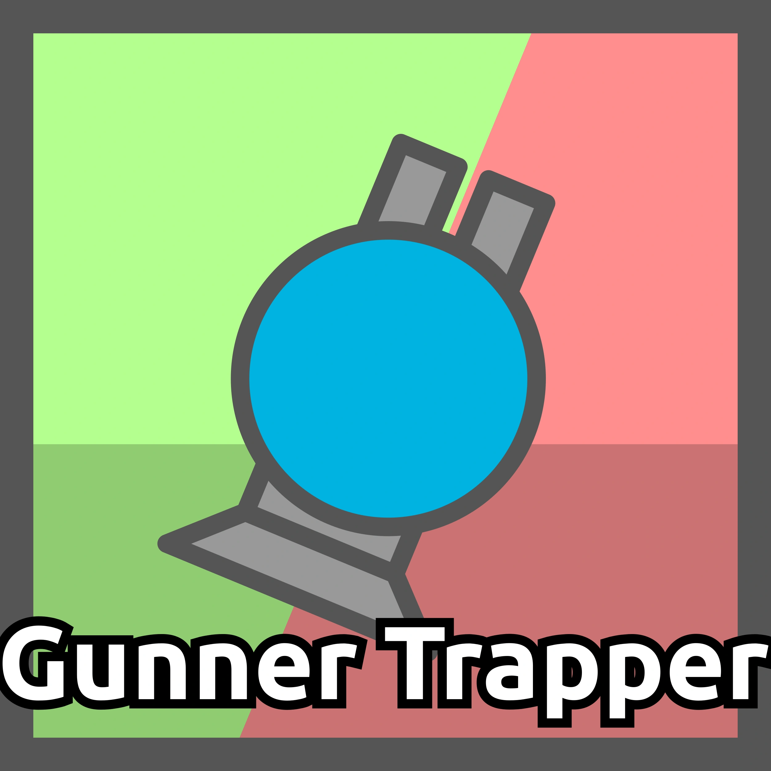 The Gunner Trapper features a circular base. It has only two Gunner barrels on the front (but with much more Bullet Penetration than Gunners) in exchange for a slightly larger Trap Launcher on the back, which has a slower base reload.
