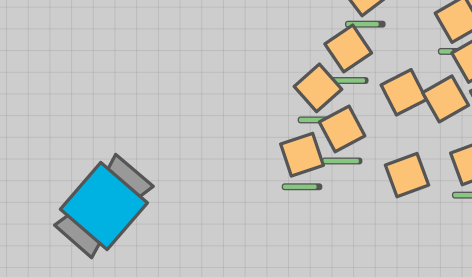 In terms of controls, the Necromancer is the same as the Overseer and the Overlord. Pressing E for Auto Fire causes the Drones to follow the cursor without holding left click or space while holding right-click or shift repels them from the cursor. Having Auto-Fire disabled and leaving the mouse unpressed causes them to congregate around the player in a dense cloud and slowly orbit them in a continuous clockwise rotation or attack the nearest Polygons and tanks.