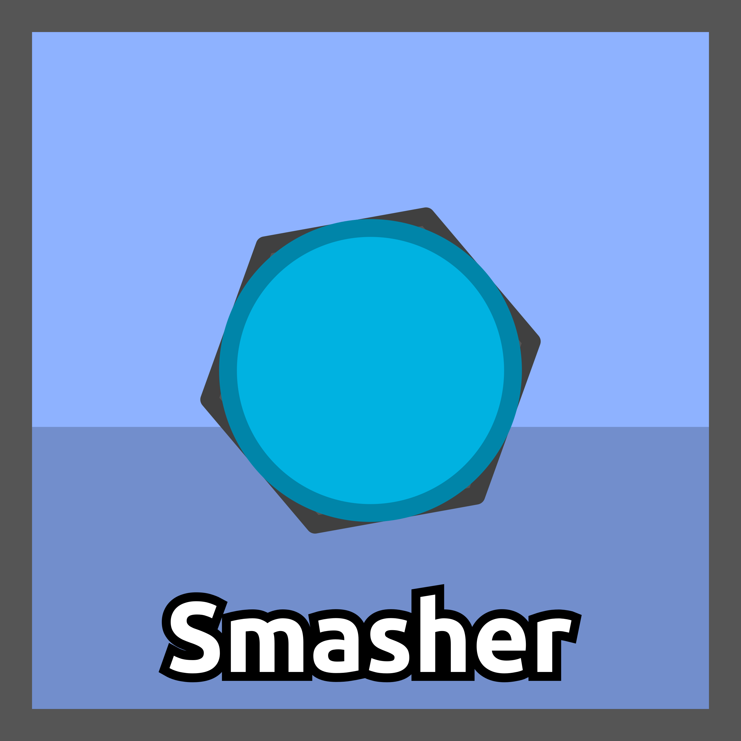 The Smasher features a circular body placed on a black hexagon, like a Dominator except with no Barrels or Launchers, and much smaller. Unlike the majority of classes, the Smasher has no Barrels or weapons of any kind, instead, it uses itself as its weapon. The black hexagon automatically spins.
